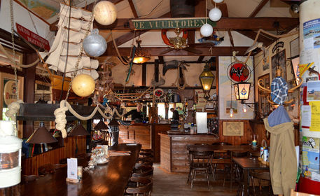 Eenmaal binnen ontdek je dat alles hier te maken heeft met schepen en zeevaart. De wanden hangen vol met alles wat je op een schip kan vinden. Van oude boegbeelden tot complete stuurinrichtingen en van een koperen patrijspoort tot een heuse scheepsradio. Hoe langer je om je heen kijkt hoe meer je ziet. Als je al op het eten moet wachten, is dat beslist geen straf.