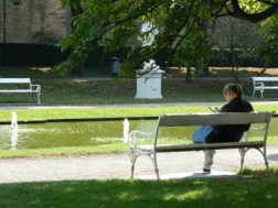 Het is een mooie, warme, zomerse namiddag. In het grote en oude park dringen de geluiden van de stad zo gedempt door, dat de merel in de beuk zeker weet dat alleen hij hier het hoogste woord voert. Het meisje, wat iets verder bij de rododendrons op een bankje zit, had van zijn zang kunnen genieten als ze niet te zeer verdiept zou zijn in het lezen en beantwoorden van berichtjes op haar smartphone. Ook de man die al twee keer langzaam rijdend op zijn fiets voorbij kwam, heeft ze niet opgemerkt.